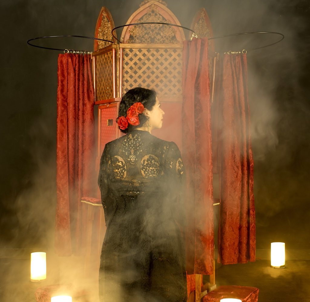 Knælende ved en skriftestol, kan publikum smugkigge ind i syndens verden. THE SINNER er et intimt dukketeater, der kan opleves af kun tre publikummer ad gangen. I en blanding af erotik, voyeurisme og en masse humor, lokker Madame Paulette publikum ind i en legende og provokerende forestilling, hvor grænser udforskes, og begær iscenesættes.
